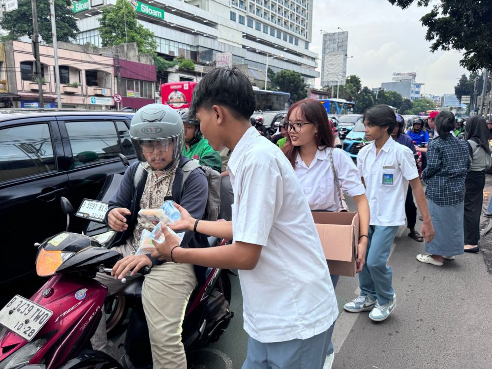 JURNALKATA.NET/ Jakarta. – Puluhan pelajar dari berbagai sekolah di Jakarta yang tergabung Blok Pelajar Politik Merdeka ( BP2M) ,kamis sore tadi membagikan takjil kepada para pengendara yang melintas.